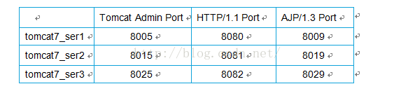 2、 为了三个tomcat能够在一台机器上同时启动,需要在server.xml修改tomcat的端口信息。修改方案如下: