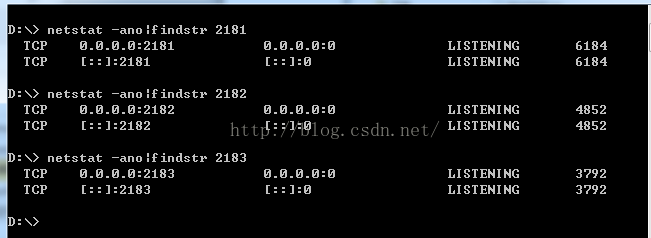 进入cmd 命令,输入:netstat-ano|findstr 2181 查看端口是否启用