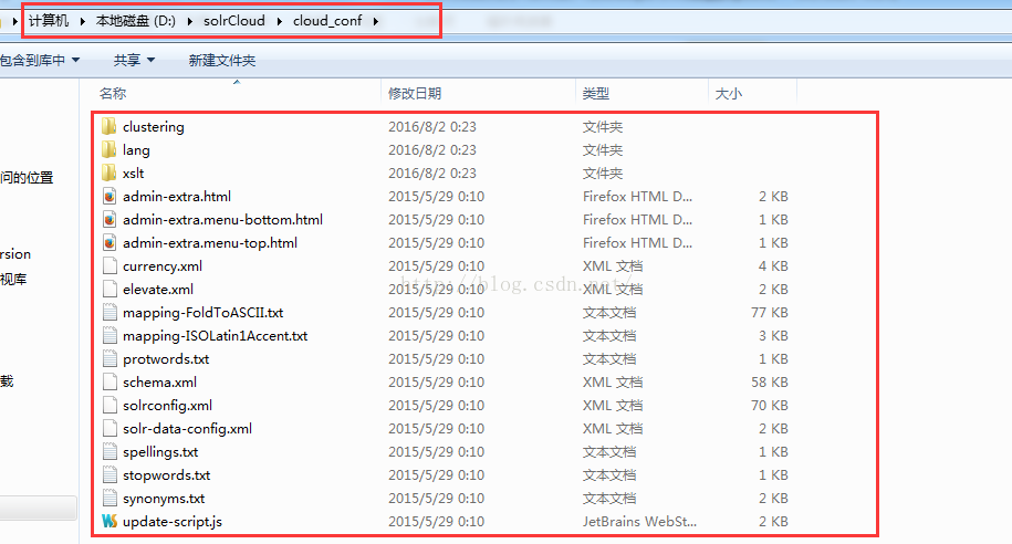 在D:\solrCloud下创建cloud_conf文件夹作为配置库,如下图: