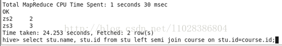Total MapReduce CPU Time Spent: 1 seconds 30 msec