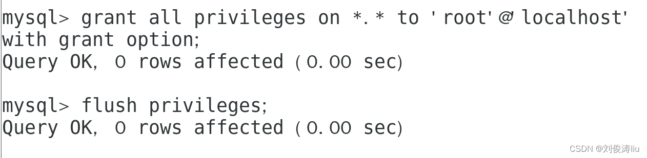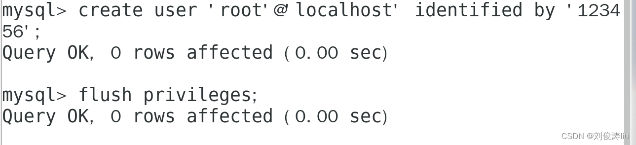 看到Query OK, 0 rows affected (0.00 sec)则操作成功