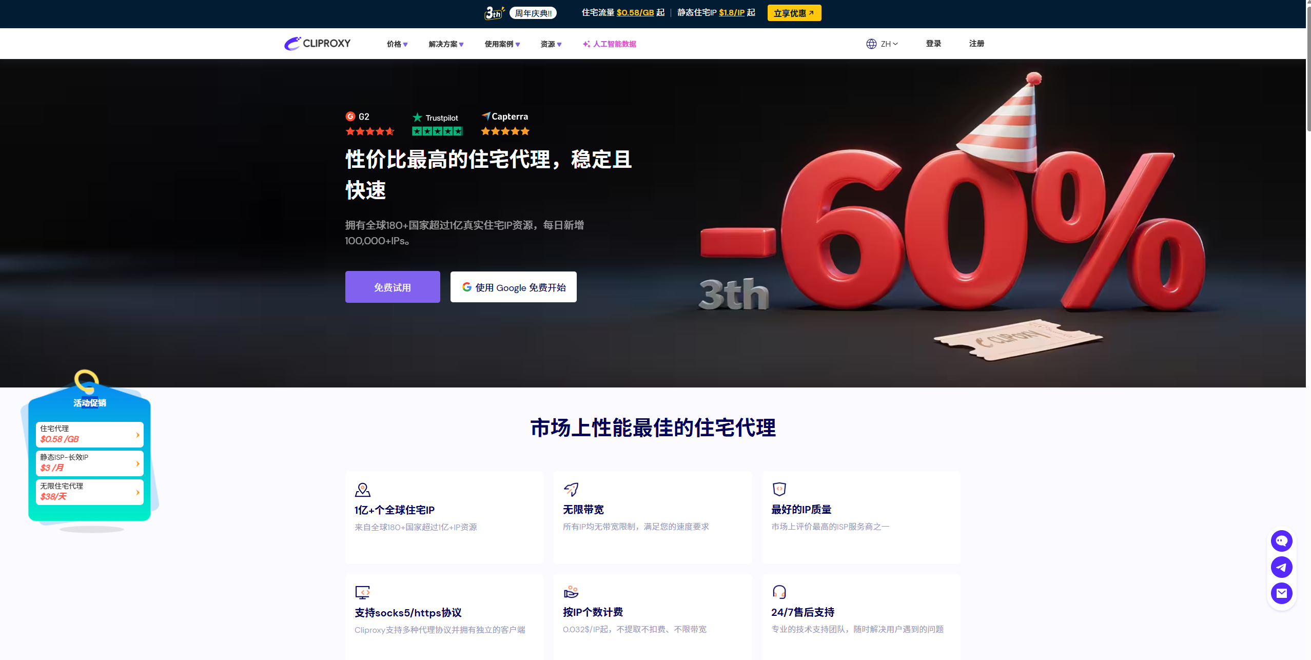 在众多网络代理服务商中,Cliproxy 犹如一颗璀璨的明星,闪耀着独特的光芒。它是一家专注于提供海外家庭 IP 代理服务的专业平台,凭借着在网络代理领域的深厚积累和卓越技术,成为了众多跨境办公企业和个人的信赖之选,在行业中占据着举足轻重的地位 。