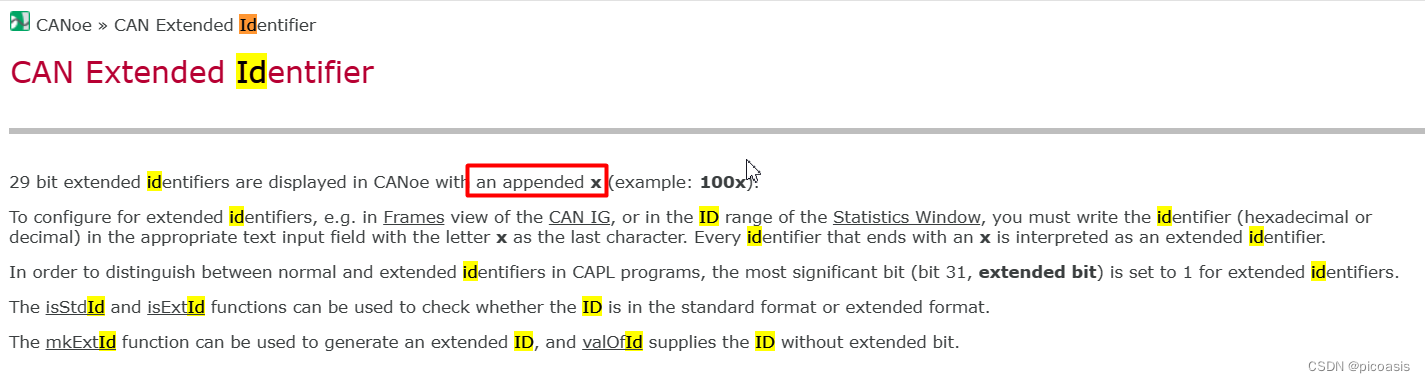 解决:因此联想到扩展帧的ID是否有什么不同的格式——查找help文档中的capl-->CAN-->ID相关命令——>找到isExtId命令,点开后,其中有关于扩展帧ID的链接,据此找到了解决方案。