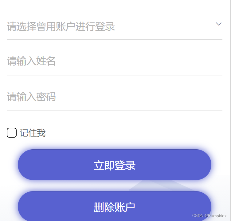 文章描述了一个使用Vue开发的登录界面,包括选择已登录账户、输入姓名和密码、记住登录选项,以及删除账户的功能。同时涉及了本地存储和Vuex的状态管理。