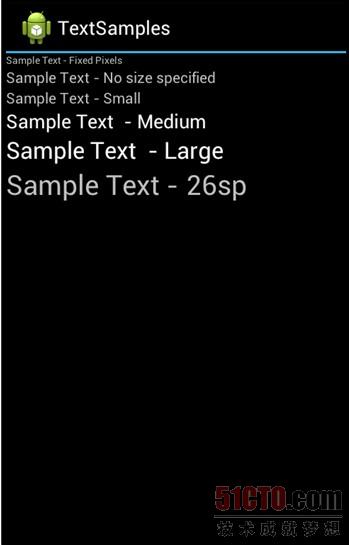 Android平台定义了一套普遍适用的字体尺寸方案,我们可以将其直接套用到自己的应用程序当中:小、中、大三种选项基本能够满足各类用户需求。这些字体尺寸以SP单位为基础配置而成,因此会随着用户的偏好设置而发生变更。