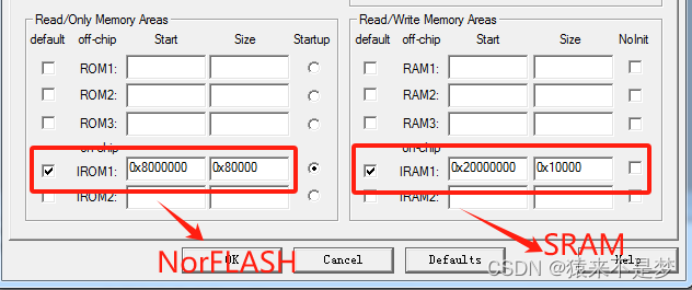 Keil编译器存储器设置NorFLASH、SRAM: