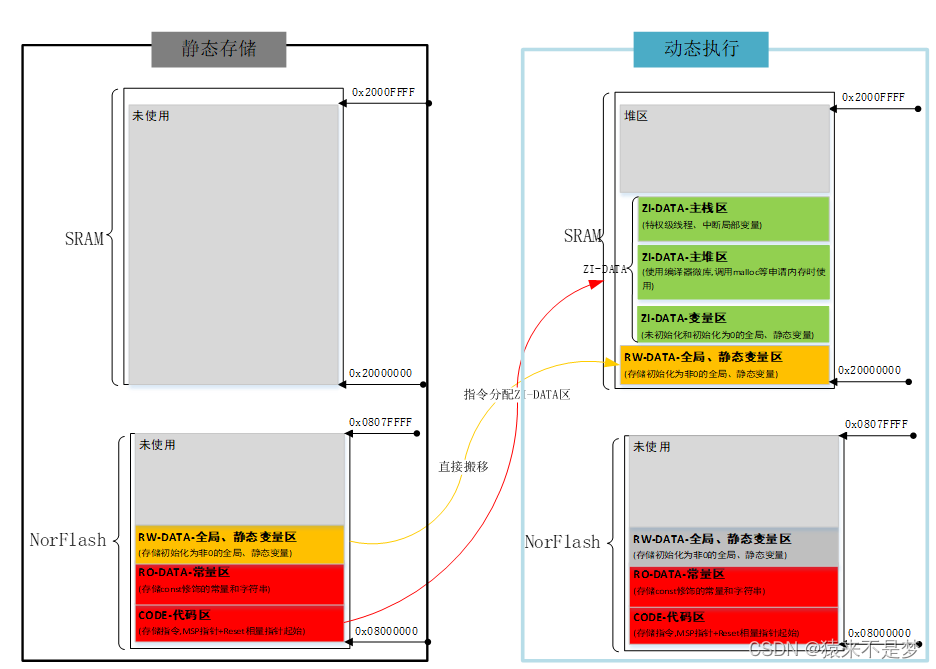 | RW-DATA | 读/写 | NorFlash | SRAM | 变量区:初始化为非0的全局、静态变量。 | |