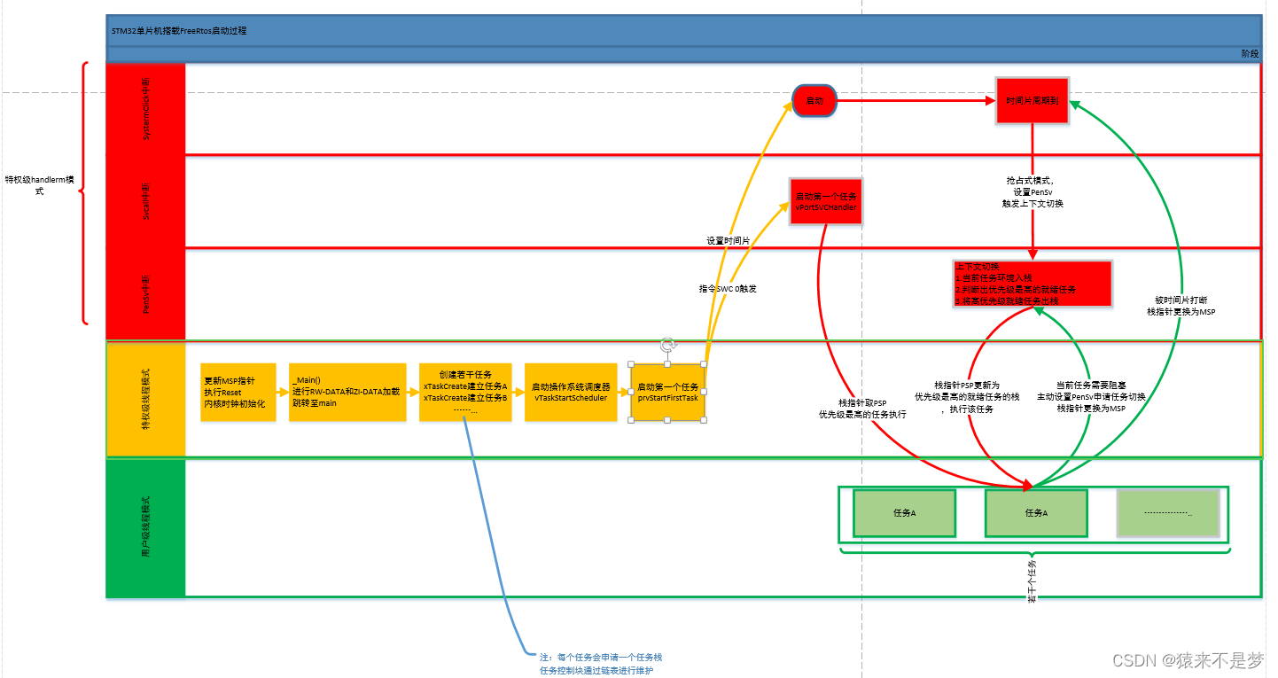 FreeRtos启动如下图所示(仅分析统一初始化任务后,启动任务调度):
