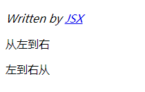 <bdo>可覆盖默认的文本方向,有一个属性 dirdir="rtl"字体重右到左显示dir="ltr"字体从左到右显示(默认)