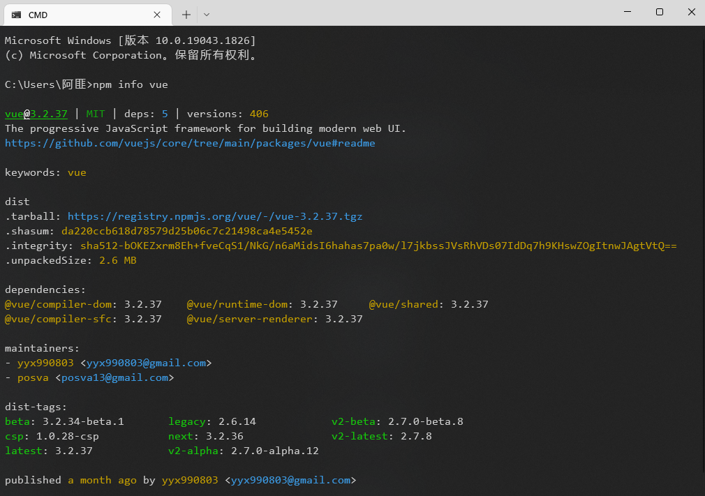 上面的指令等于为 npm init 设置了默认值,以后执行 npm init 的时候,package.json 的作者姓名、邮件、主页、许可证就会自动写入预设的值。这些信息会存放在用户主目录的 ~/.npmrc 文件,使得用户不用每个项目都输入