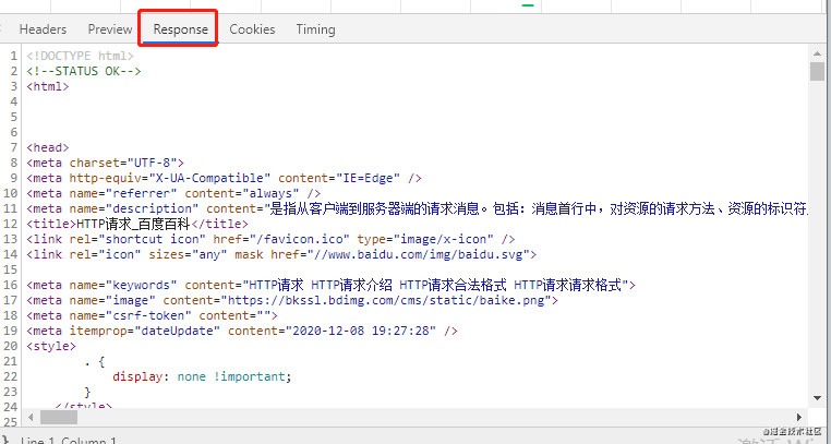 响应报文:服务器返回给浏览器的文本信息,通常HTML, CSS, JS, 图片等文件就放在这一部分。
