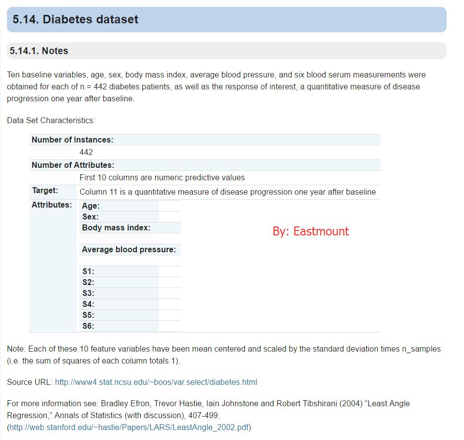 1.diabetes dataset数据集