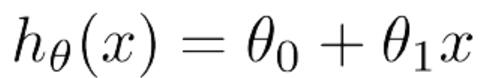 可以表示如下公式,简写为h(x),即带一个变量的线性回归或单变量线性回归问题。