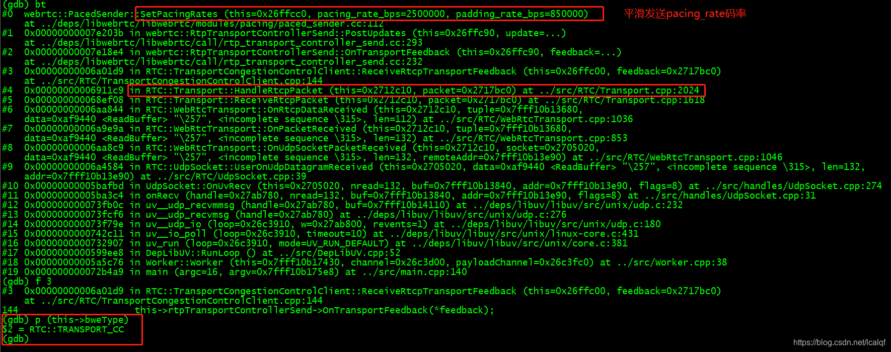 处理客户端反馈的transport-cc报文,修改服务端pace_sender码率,mediasoup中的paced_sender.cc文件是修改过的,