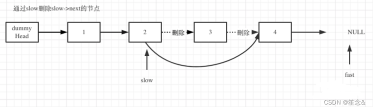 slow->next = slow->next->next;//删除倒数第n个节点