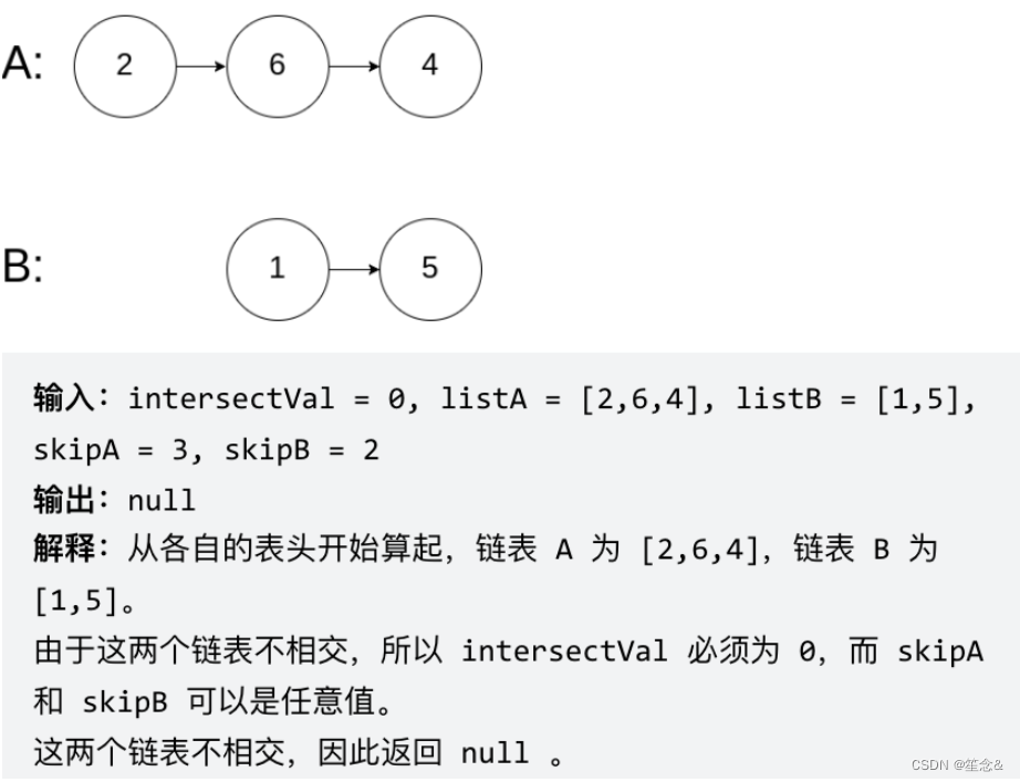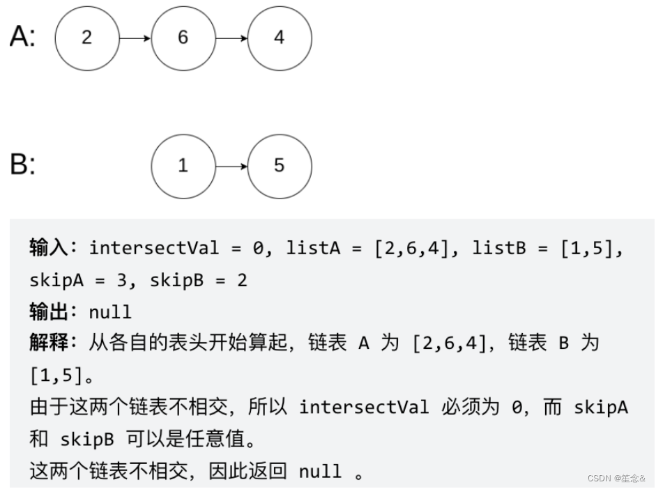 给你两个单链表的头节点 headA 和 headB ,请你找出并返回两个单链表相交的起始节点。如果两个链表没有交点,返回 null 。