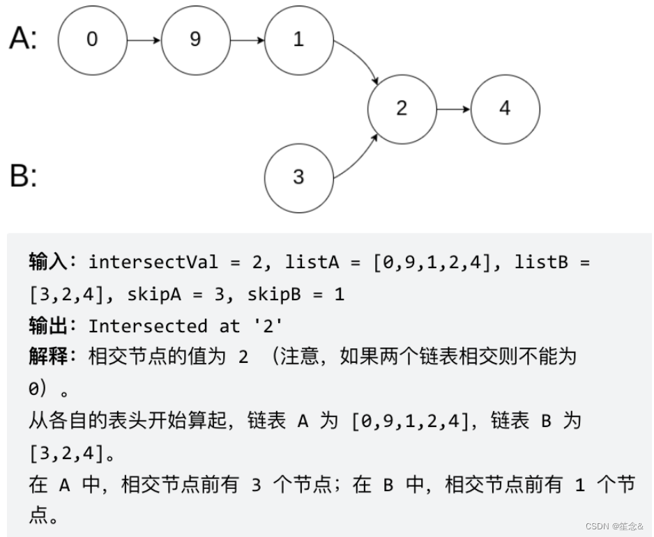 简单来说,就是求两个链表交点节点的指针。 这里同学们要注意,交点不是数值相等,而是指针相等。