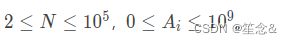 第二行包含 NN 个整数 A_1,A_2,··· ,A_NA1,A2,⋅⋅⋅,AN。(注意 A_1A1 ∼ A_NAN 并不一定是按等差数列中的顺序给出)