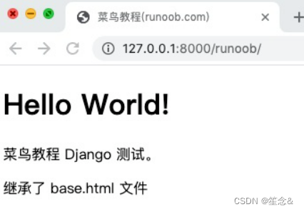 runoob.html 中继承 base.html,并替换特定 block,runoob.html 修改后的代码如下:
