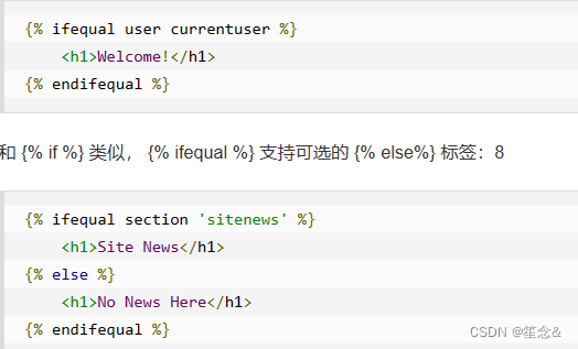 {% ifequal %} 标签比较两个值,当他们相等时,显示在 {% ifequal %} 和 {% endifequal %} 之中所有的值。