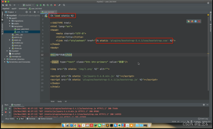 在模板中使用需要加入 {% load static %} 代码,以下实例我们从静态目录中引入图片。