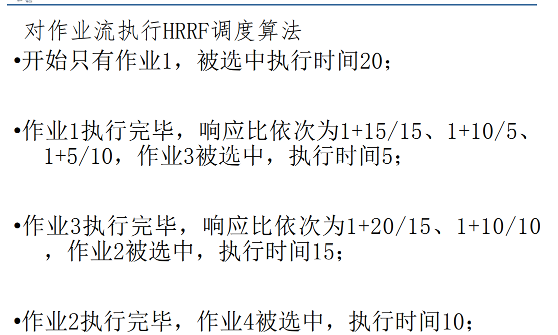 短作业容易得到较高响应比, •长作业等待时间足够长后,也将获得足 够高的响应比 不会发生饥饿现象