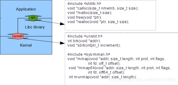 一般情况下, 应用程序并不是直接从操作系统分配内存,而是通过glibc库来进行内存分配。