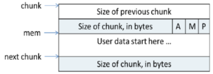 chunk指针: 指向一个chunk的开始,一个chunk中包含了用户请求的内存区域和相关的控制信息.