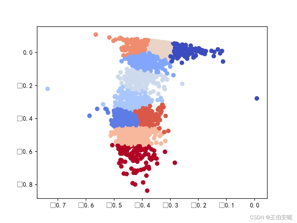 plt.scatter(encoder_data[:, 0], encoder_data[:, 1], c=result, cmap='coolwarm')