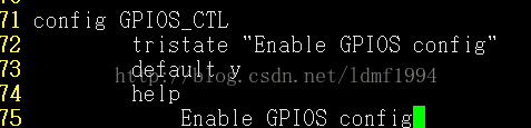 A、在内核源码中,找到drivers/char/Kconfig,仿照led写一个GPIO的设备控制配置,如下: