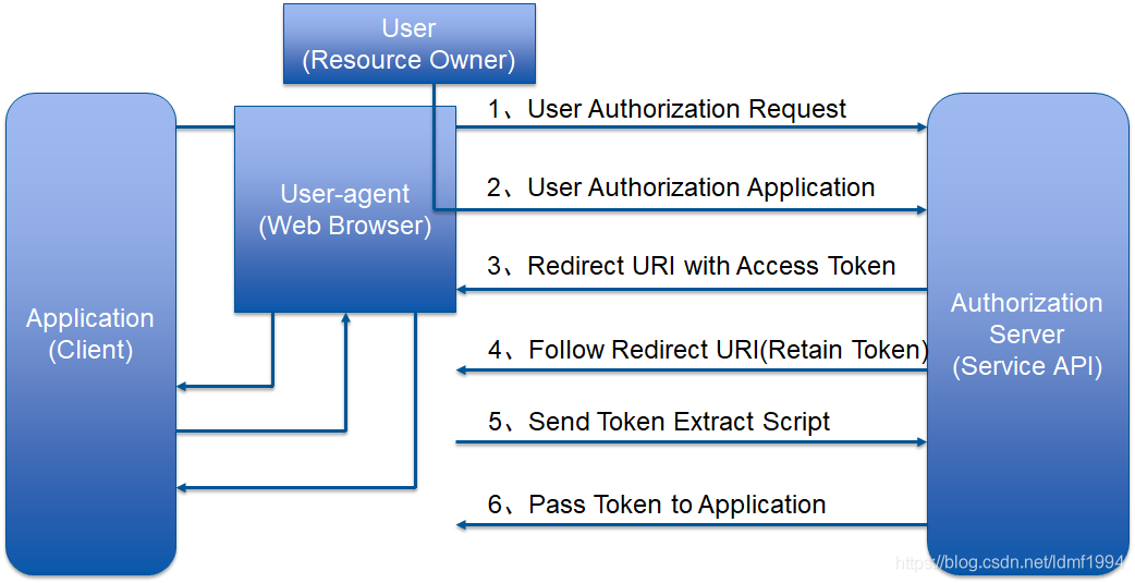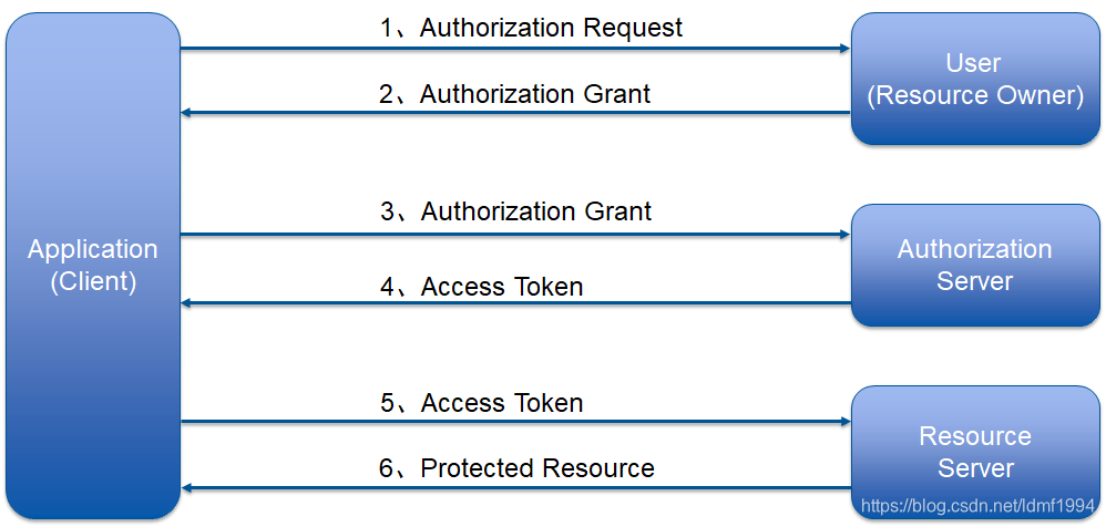 5、Access Toke(使用通过令牌):客户端向资源服务器发送从授权服务器获得的通过令牌,用于验证请求资源信息
