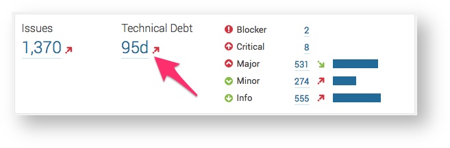 这些天的测量值是把每个问题中出现的技术债务相加得到的,你可以在每个问题块中看到。