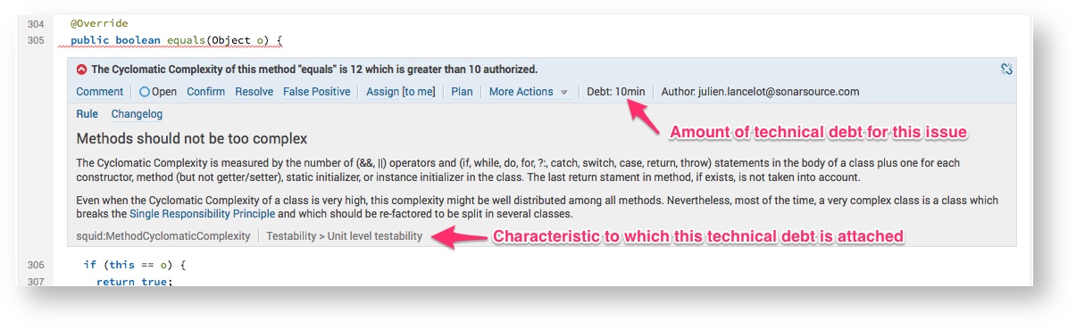 这些规则在一个公共的存储库中是因为他们对所有语言是共用的。一旦你激活了它们,你可以以一个问题跟踪每个质量缺陷,为跟踪技术债务(SQALE方法用天度量)做准备。