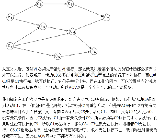 是所有有向边了。因此,AOV网其实是工作流网的一种特例,是一种全入全出的有向无环工作流网。