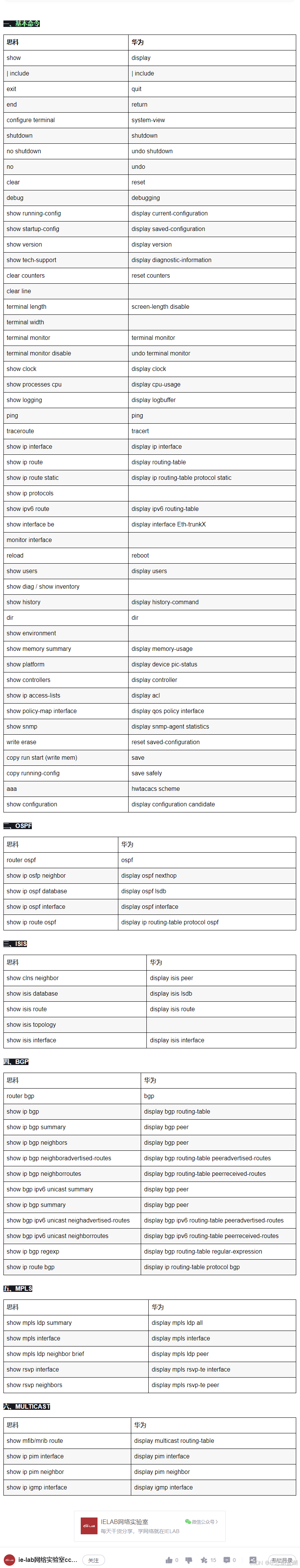 思科、华为常用的基础命令对比