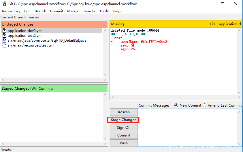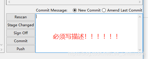 选择Stage Changed,然后再点击Commit提交,这个时候肯定会失败,因为你没写描述