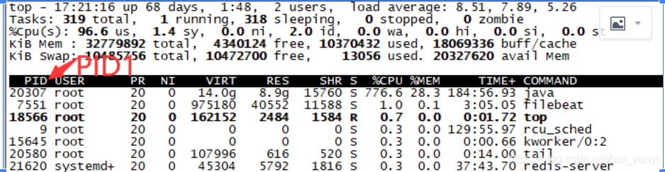 1、top 找到 PID1