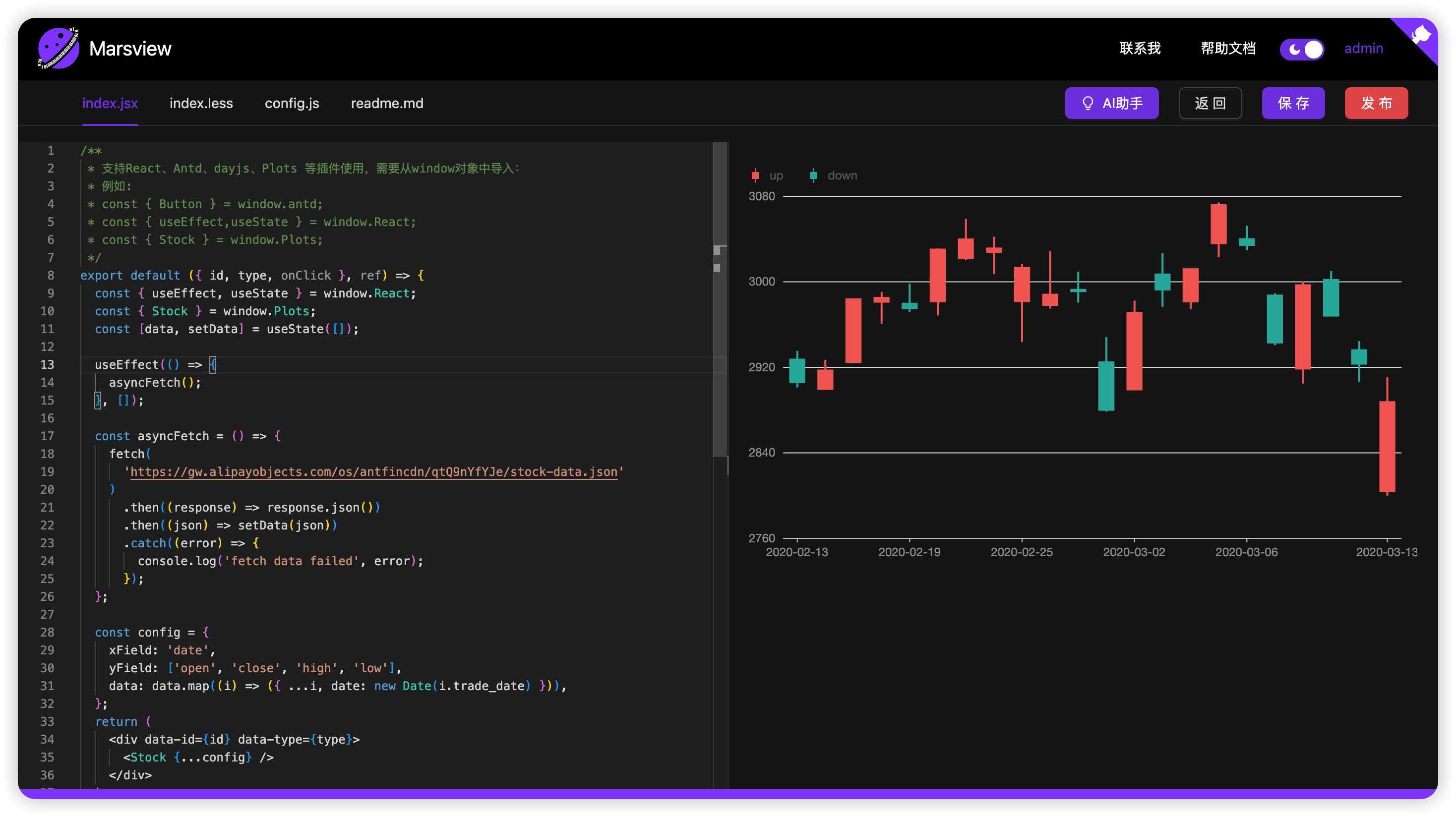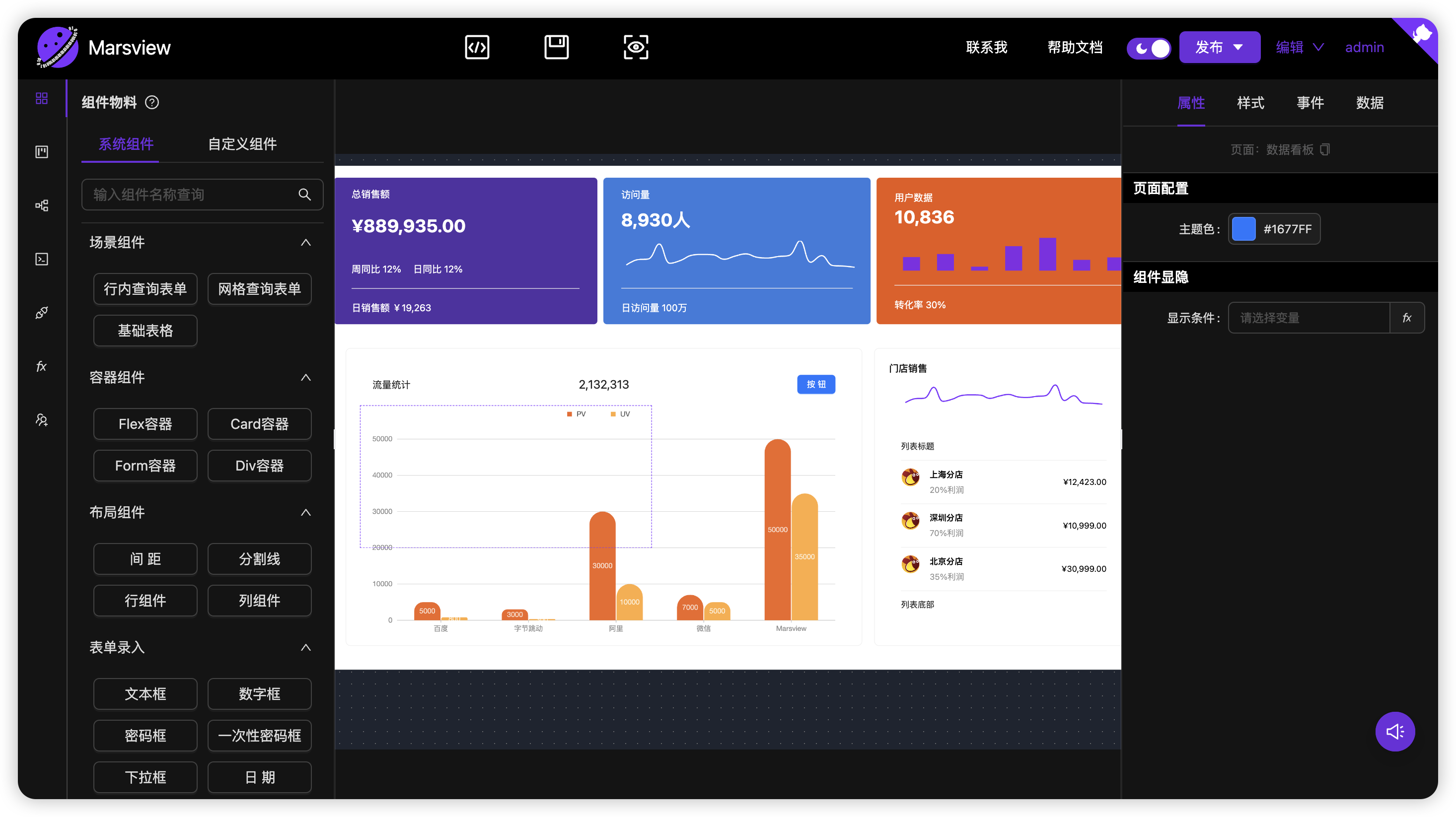 简而言之:如果你需要快速构建后台管理系统、业务平台、仪表盘或中台系统,Marsview 提供了可视化拖拽、逻辑配置、接口管理、数据联动、发布回滚等能力,显著提升开发效率。