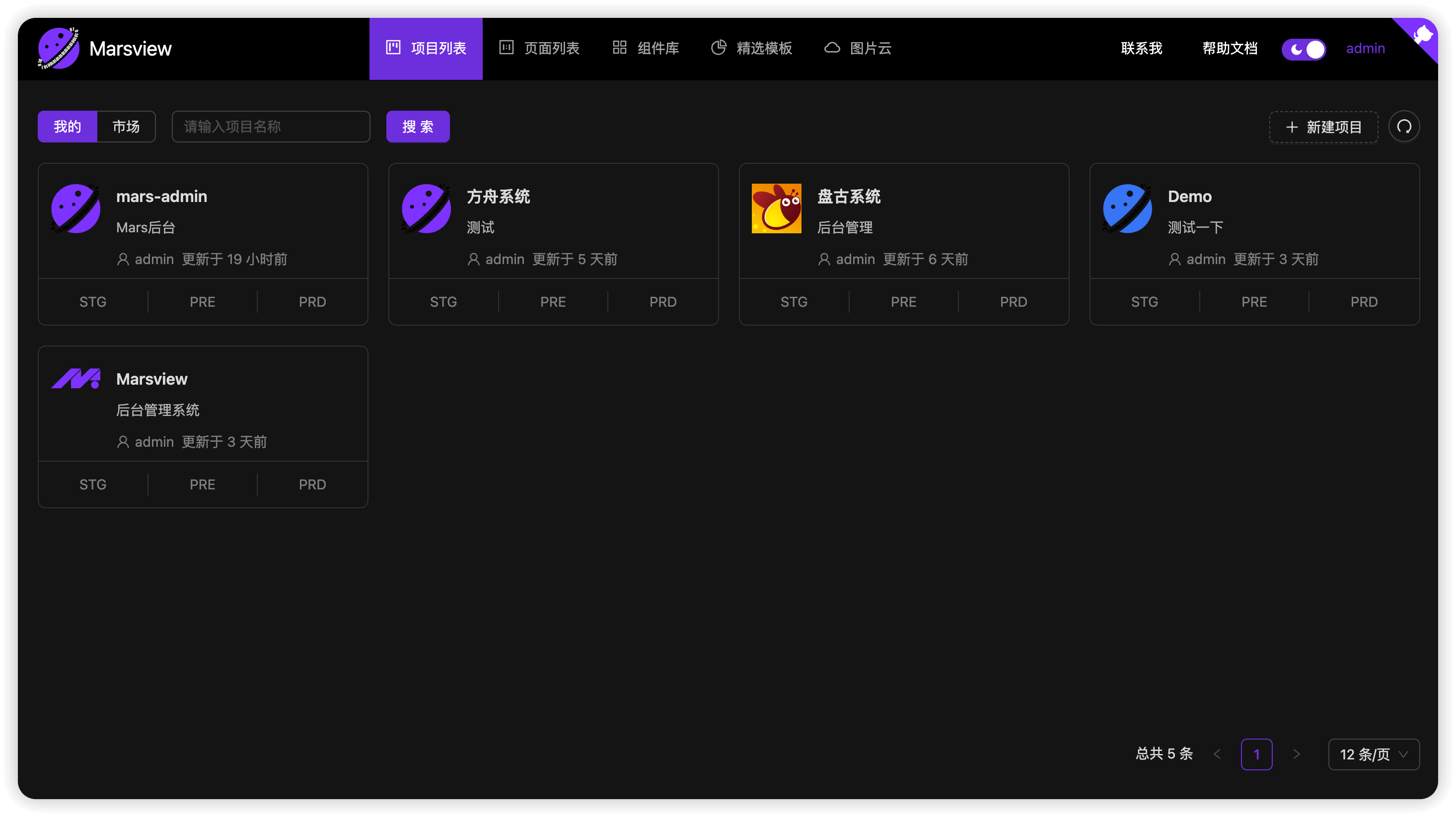 “Marsview 是一款中后台方向的低代码可视化搭建平台,开发者可以在平台上创建项目、页面和组件,支持事件交互、接口调用、数据联动和逻辑编排等”