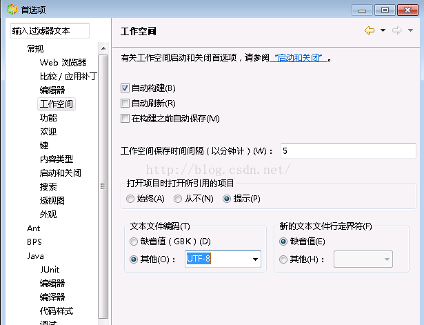 窗口 - 首选项 - 常规 - 工作空间,选定编码