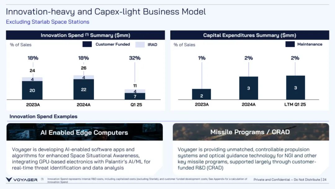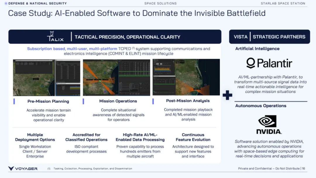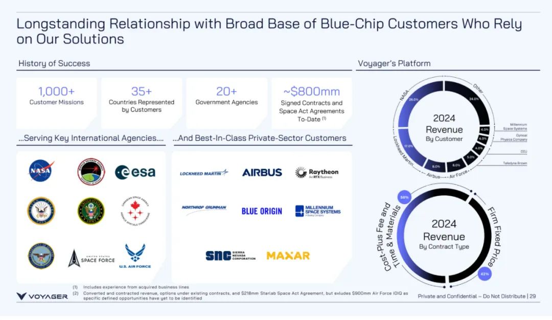 Voyager的核心合作伙伴与客户包括Palantir、美国国家航空航天局(NASA)、洛克希德·马丁、美国空军以及Sierra Space等。