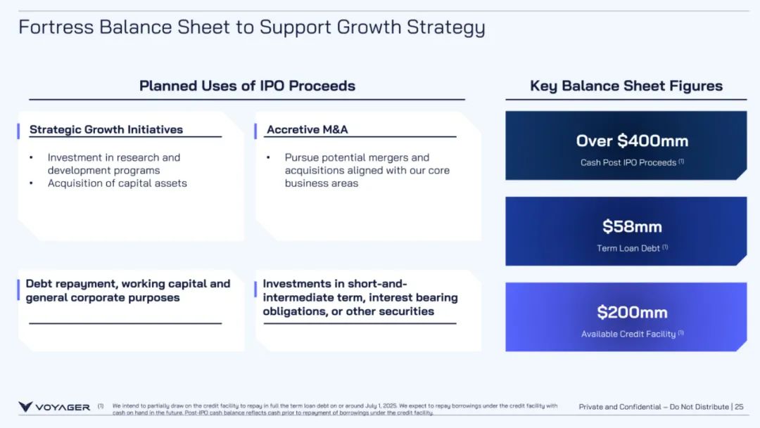 Voyager此次发行1100万股,发行区间为26美元到29美元,最高募资3.19亿美元。