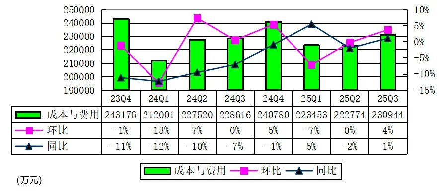 挚文集团2025年第三季度成本和费用为23.094亿元(3.244亿美元),较2024年同期的22.862亿元增长1.0%。主要是由于: