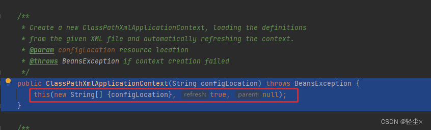 创建ClassPathXmlApplicationContext时,会调用this构造函数