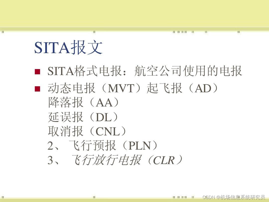 而从提供方角度来讲,机场常见报文有SITA报文和AFTN报文。关于此两类报文背景和相关知识,需要读者的您另行查阅相关文献资料予以了解。