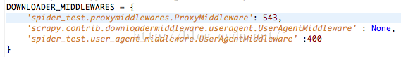 setting中设置:(ProxyMiddleware和UserAgentMiddleware的路径 )