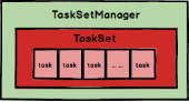 Spark Task 的调度是由 TaskScheduler 来完成,由前文可知,DAGScheduler 将 Stage 打包到交给 TaskScheTaskSetduler,TaskScheduler 会将 TaskSet 封装为 TaskSetManager 加入到调度队列中,TaskSetManager 结构如下图所示