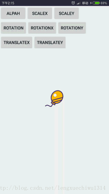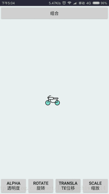 视图动画提供了四种动画方式:AlphaAnimation(透明图),RotateAnimation(旋转),TranslateAnimation(位移),ScaleAinmation(缩放),还有一个AnimationSet(动画集合:混合使用多种动画)
