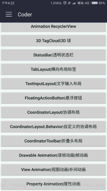 缺点:不具备交互性,当某个元素放缓是呢过视图动画后,其响应时间的位置还在动画前的地方,所以试图动画只能做普通的动画效果,应避免交互的发生。