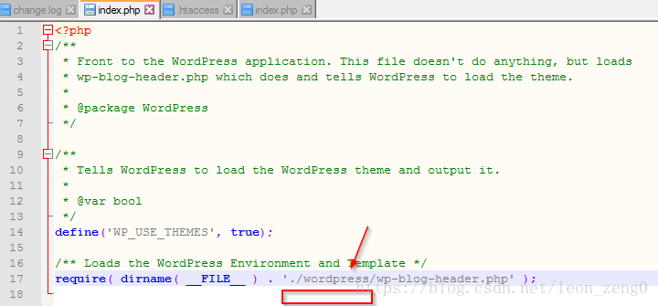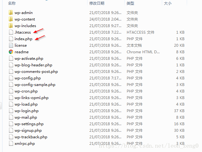 看看Wordpress 目录,看到有2个文件, .htaccess 和 index.php, 需要复制这2个文件到web 网站主目录下,我的是www。